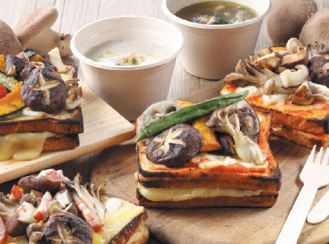 他にも「美味しさの見える化」をコンセプトに、キッチンカーで全国各地に出店。即売会だけでなく、しいたけを使用したピザトーストなど、生産者さんのきのこを使った多彩なメニューを開発し、販売中です。その土地の生産者さんを紹介するだけではなく、きのこを美味しく食べられるメニューを販売することで、より身近な食材であることをアピールしています。