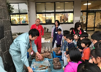 2010年より、下野市自然に親しむ会と連携して、下野市、壬生町できのこに関する雑学や栽培体験をメインにした食育活動を開始しました。今後は、全国サンマッシュ生産協議会会員の皆様と共に連携をとりながら、全国各地に展開していきたいと考えています。