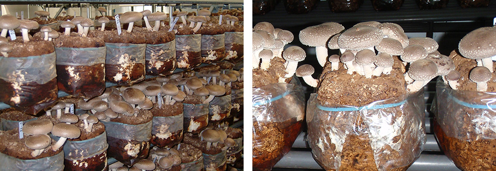 きのこはM・Lクラス中心で、夏季高温時に肉質の硬い高品質のきのこが発生してきます。きのこの地色は灰茶色であり、明るい色調をしています。