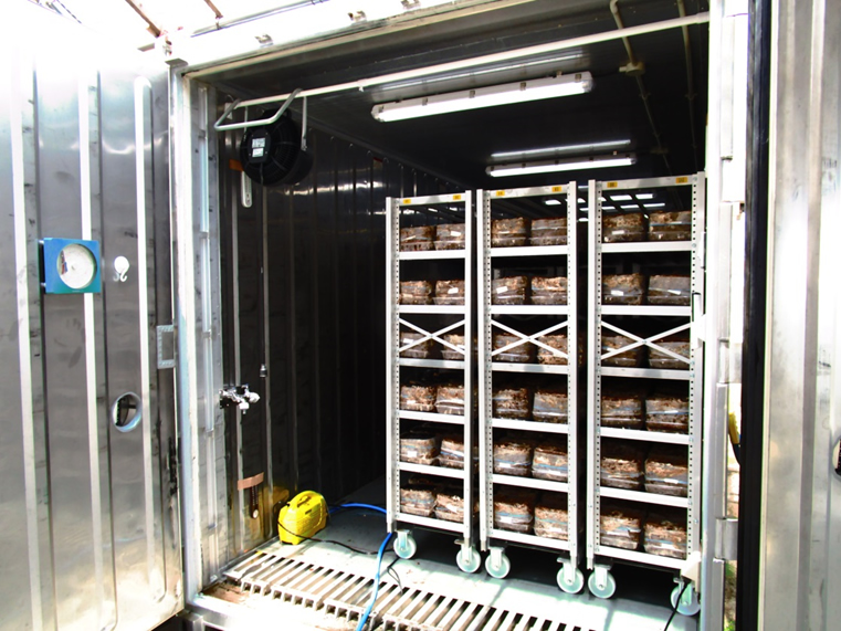開所時より主に受託作業を中心に活動してきましたが、作業単価が低い物が多く作業量に変動があり安定した活動と作業収入がありませんでした。多くの利用者さんは体力があまりなく外での活動(農業)には向きません。そこで景気や気象状況に左右されにくいシイタケ栽培を始めました。サンマッシュBOXによる栽培は夏は涼しく冬は暖かく収穫する椎茸も軽く当事業所にはぴったりの作業でした。