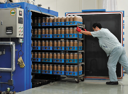 研究所で開発された品種は、最新設備を整えた製造工場で、徹底した品質管理体制のもと種菌製造を行います。