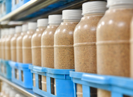 種菌製造において重要なことは、雑菌のいないクリーンな種菌であることはもちろん、生産者さんにとって作業上使い勝手が良く、最終的に売上に貢献できる種菌を安定的に生産することです。菌株の選抜から始まり、研究所と共同で取り組んでいる性能試験を経て、目視による最終検査、「鑑別」を行います。